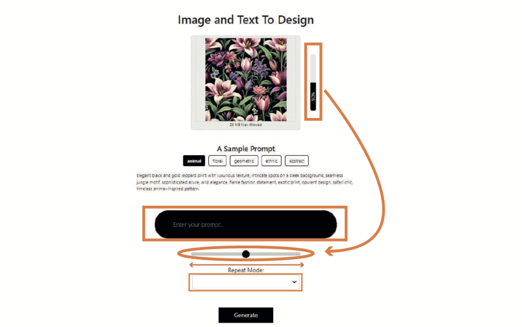 - Select Reporting Format: The tool has six reporting format such as Block Repeat fully seamless report, Half Drop half-report format, Brick like T Reporting format, Vertical Report and Horizontal Report you can incorporate into your design. You can create from realistic floral images to abstract representations with writing or using MYTH AI features relevant to your desire and your vision.